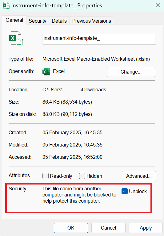 You will need to enable the embedded Macro to allow the csv generation. To do so, right-click on the file and select "Properties", and in "General " tab, tick "Unblock".