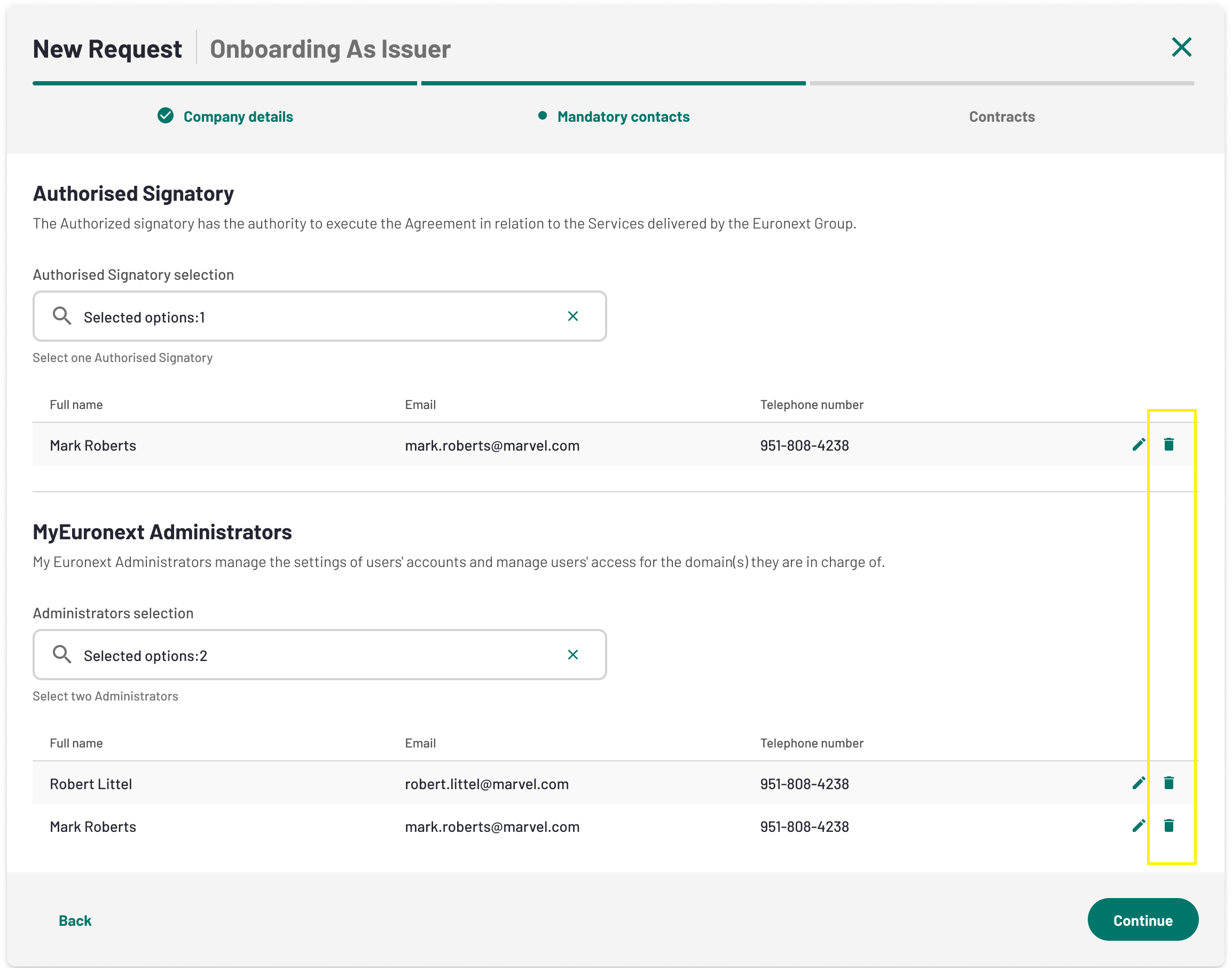 7. Issuer Onboarding - Mandatory contacts - New contact creation